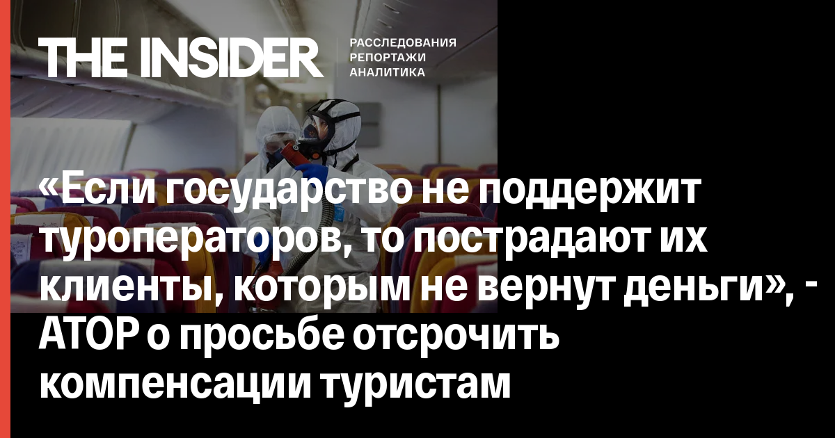 Ассоциация туроператоров России попросила разрешить туроператорам не выплачивать туристам компенсации за отмененные туры до 2022 года. Вместо этого компании хотят выдавать клиентам, требующим компенсации, сертификат, подтверждающий сохранение их средств у туроператора и возможность их использования в определенный период времени. Первый вице-президент Ассоциации туроператоров России Владимир Канторович рассказал The Insider, что без государственной поддержки турбизнес не справится.