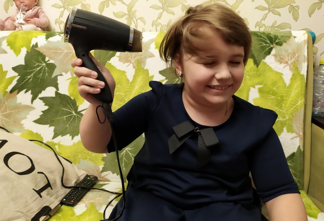 После завтрака одеваем школьную форму и доходит дело до самого нелюбимого для Кати действия – прически. Из-за стрижки приходится ежедневно укладывать волосы феном, она очень это не любит, при возможности, наверное, ходила бы лохматая, но я конечно такого не позволяю. Девочка должна быть красавицей!