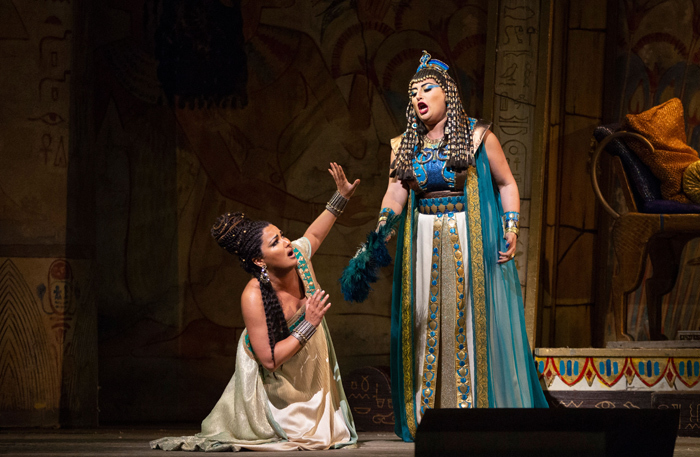 Грандиозная костюмная постановка держится в репертуаре театра больше тридцати лет. Монументальные декорации в египетском духе, эффектные шествия, балетные сцены и, конечно, звездные солисты. Примечательно, что в итальянской опере на главной американской сцене в главных ролях трое «наших» (ладно, Антоненко — рижанин, но все же). Уникальность этого каста — не только голоса, но и мощнейшие темпераменты: одно противостояние Нетребко — Рачвелишвили чего стоит!