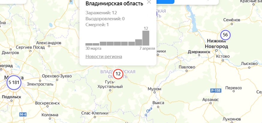 Таким образом, общее число заболевших в регионе составило 12 человек. На сегодняшний момент зарегистрирован только один летальный случай от коронавирусной инфекции – в Коврове скончался 48-летний мужчина.