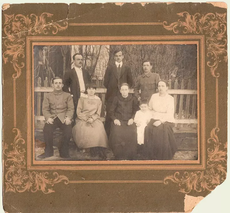 Семья Вагнер. В верхнем ряду слева: Александр Богданович Вагнер, в центре: Вольдемар Богданович Вагнер. В нижнем ряду слева: Эмануил Богданович Вагнер, в центре (третья слева): мать Вагнеров Доротея Петровна. Фото сделано, предположительно, в 1921 году