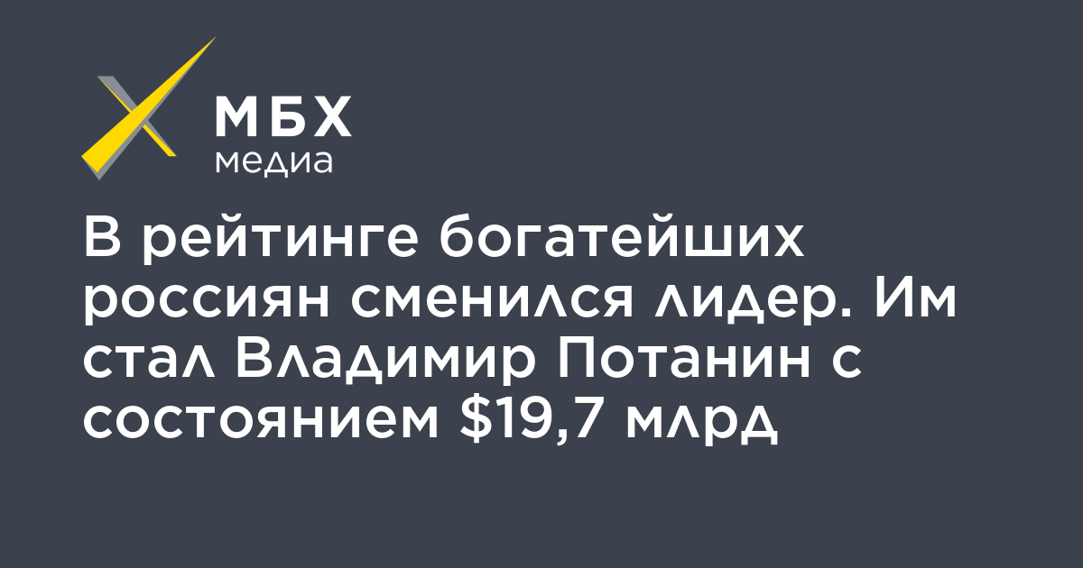 В рейтинге богатейших россиян сменился лидер. Им стал Владимир Потанин с состоянием $19,7 млрд