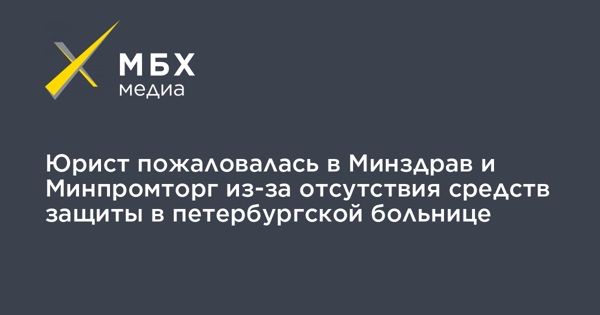 Юрист «Правозащиты Открытки» Анастасия Буракова подала жалобу в Минздрав и Минпромторг из-за отсутствия средств защиты у врачей Городской Покровской больницы в Петербурге. Об этом она сообщила «МБХ медиа».