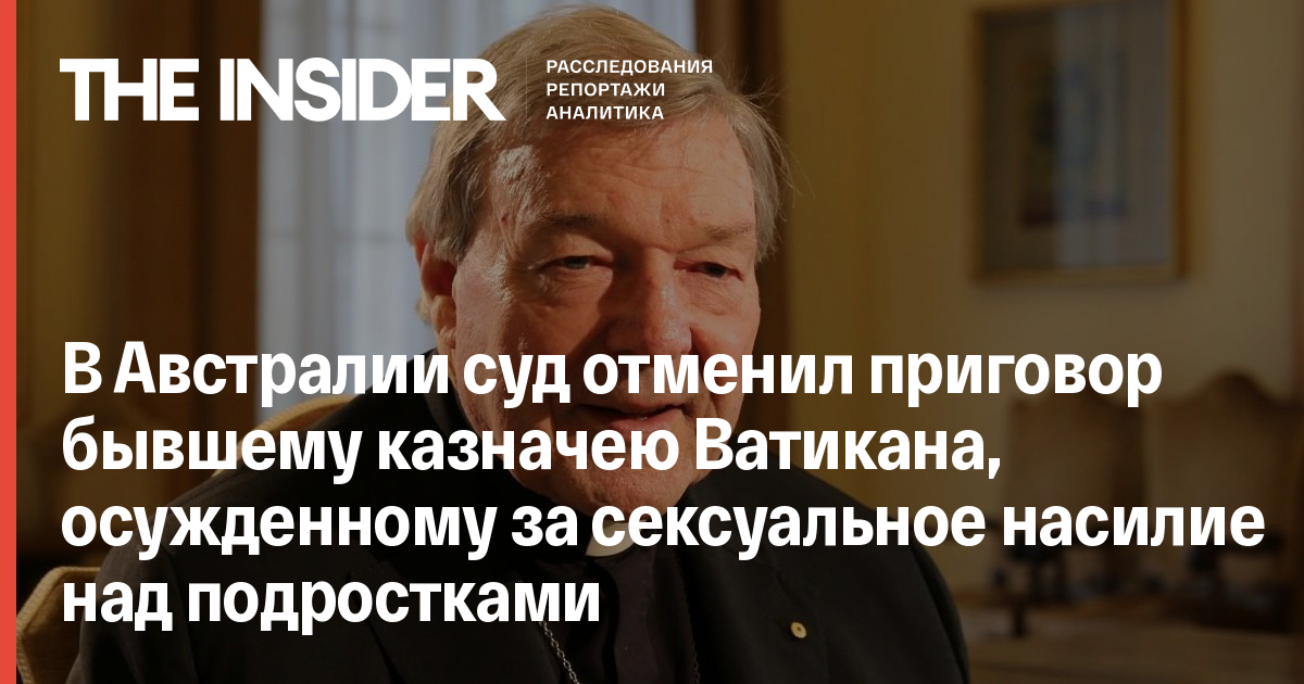 Верховный суд Австралии отменил приговор бывшему казначею Ватикана, кардиналу Джорджу Пеллу, который был осужден за сексуальное насилие над подростками. Об этом сообщает Би-Би-Си.