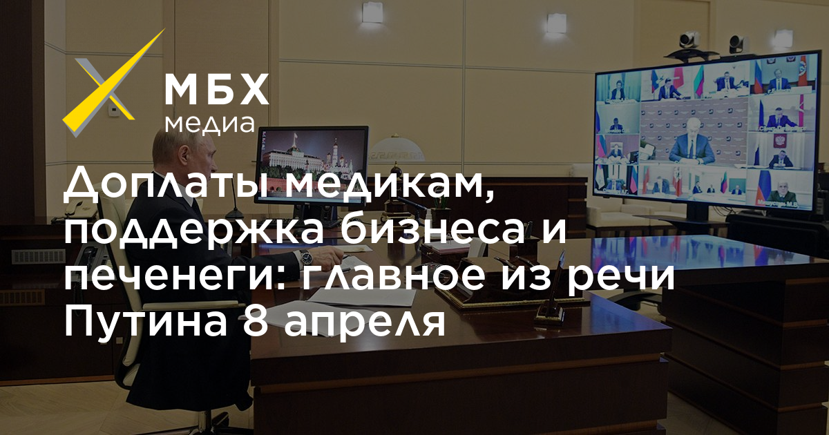 Доплаты медикам, поддержка бизнеса и печенеги: главное из речи Путина 8 апреля