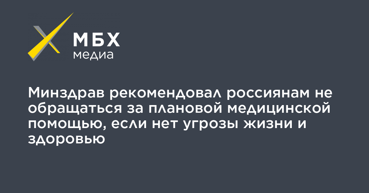 «В связи с необходимостью организации оказания медицинской помощи большому числу пациентов с коронавирусной инфекцией, принято решение по временному изменению действующих порядков организации оказания медпомощи. Руководству медицинских организаций рекомендовано рассмотреть возможность переноса сроков оказания плановой медицинской помощи в стационарных условиях. В случае, если нет угрозы жизни и здоровью пациента, в целях безопасности самих пациентов и медицинских работников, Минздрав рекомендует гражданам перенести сроки обращения за медицинской помощью в плановой форме», — отмечается в сообщении.