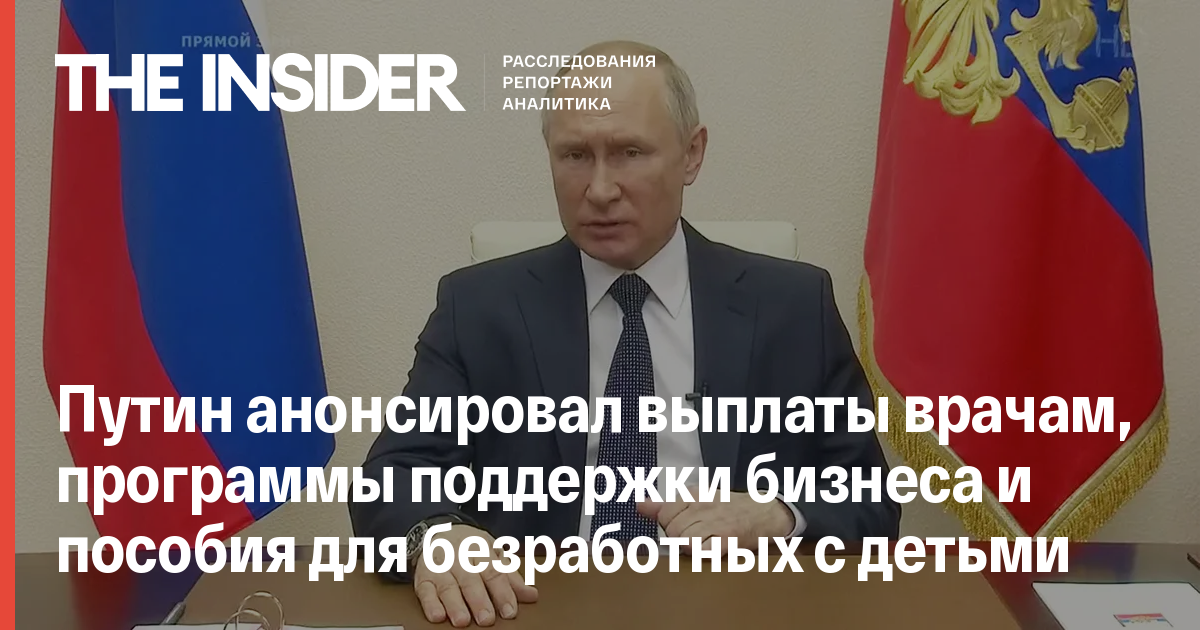Путин анонсировал выплаты врачам, программы поддержки бизнеса и пособия для безработных с детьми
