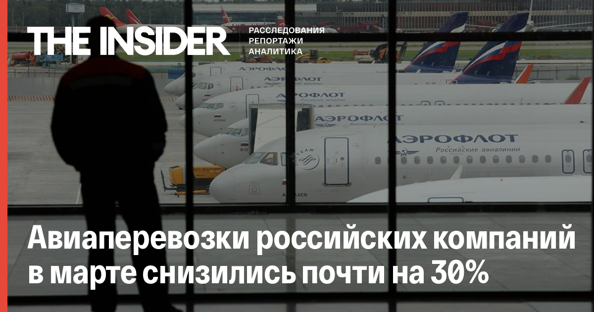Авиаперевозки российских компаний в марте снизились почти на 30%