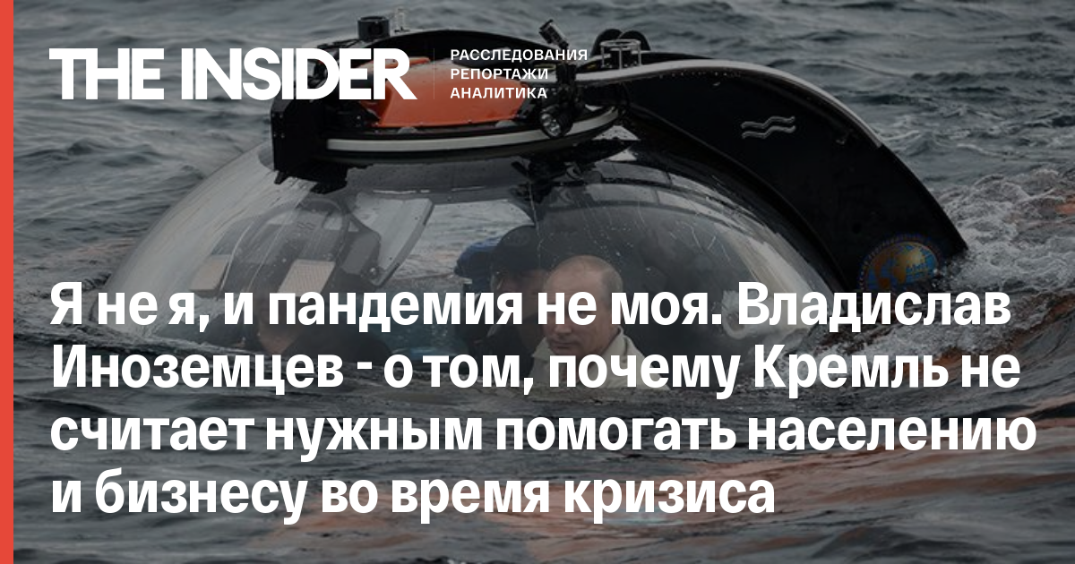 Я не я, и пандемия не моя. Владислав Иноземцев - о том, почему Кремль не считает нужным помогать населению и бизнесу во время кризиса