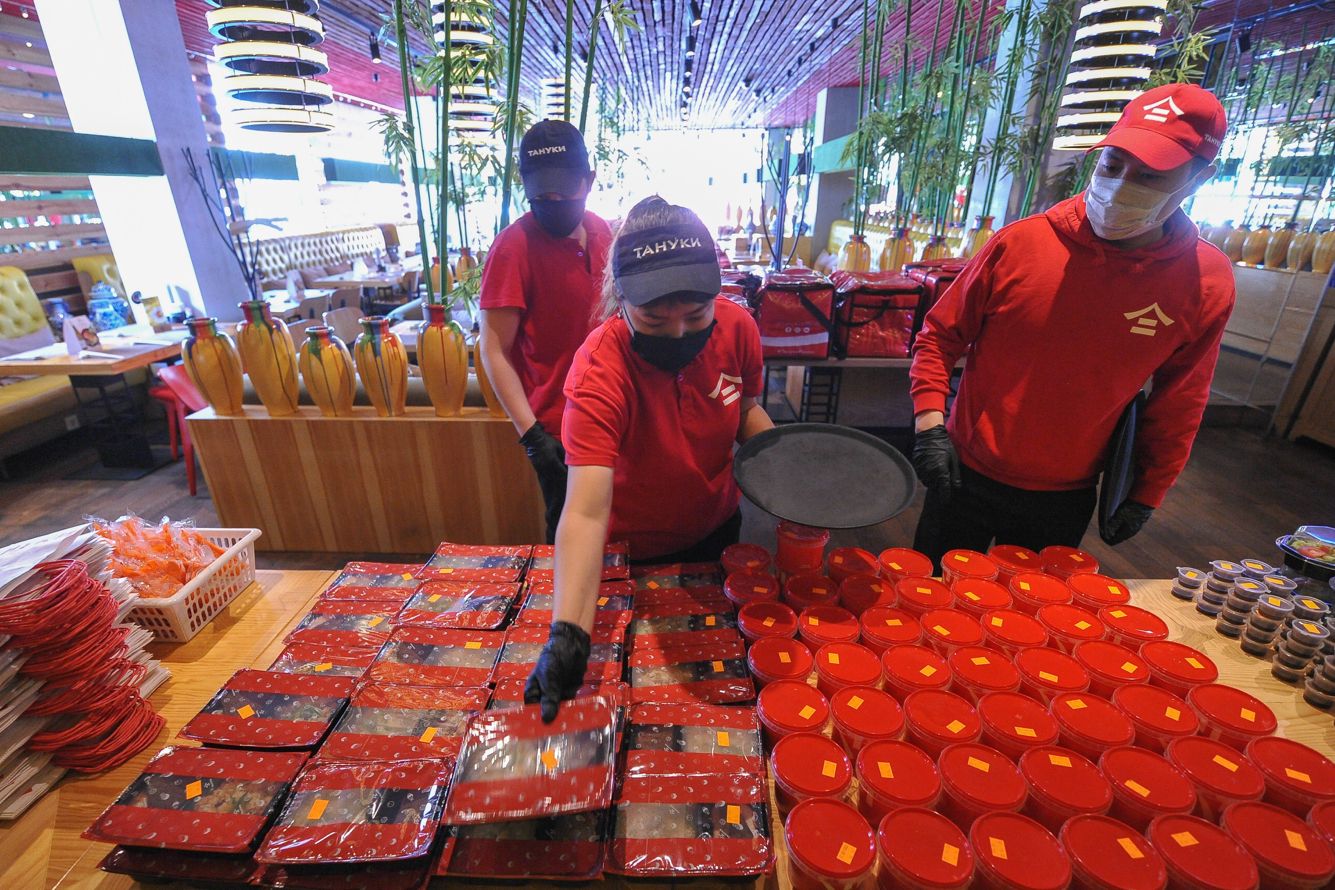 Александр Авилов / Агентство «Москва» Бесплатная еда от ресторана «Тануки» для медиков ГКБ имени Юдина, принимающей пациентов с подозрением на коронавирус. Москва, апрель 2020 года.
