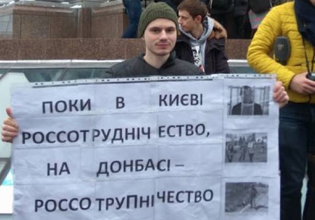 По версии следственного ведомства, 18 февраля 2018 года Изотов "совместно с Михаилом Агафоновым, также являющимся гражданином России, и иными лицами принял участие в антироссийской акции", организованной руководителем Организации украинских националистов Николаем Коханивским.