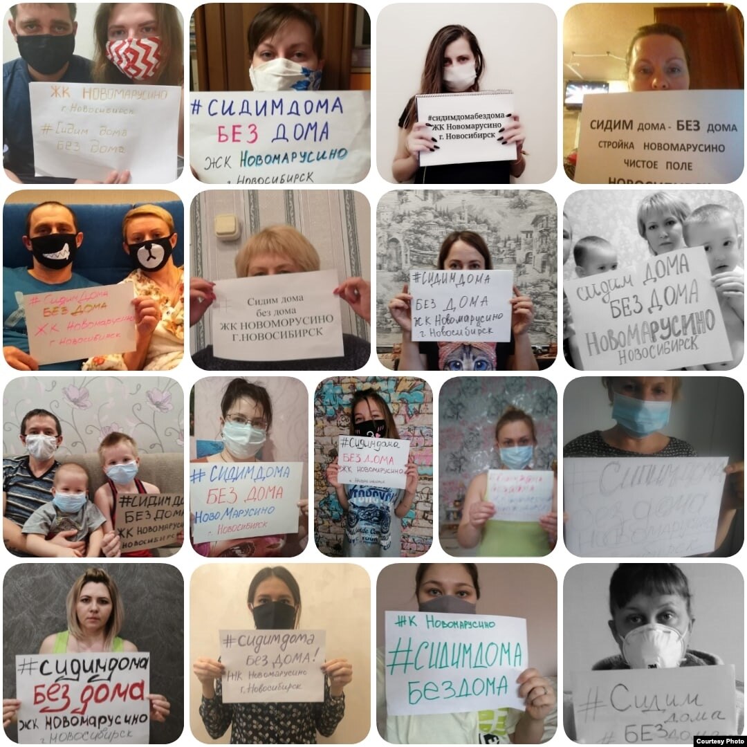 Дольщики жилого комплекса "Новомарусино" в Новосибирске, который строили по президентской программе, запустили в социальных сетях флешмоб #сидимдомабездома. Люди выкладывают в соцсетях свои фото с соответствующим хэштегом. Так они хотят напомнить чиновникам о своих проблемах.