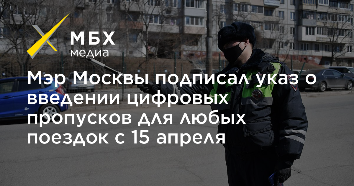 Мэр Москвы подписал указ о введении цифровых пропусков для любых поездок с 15 апреля