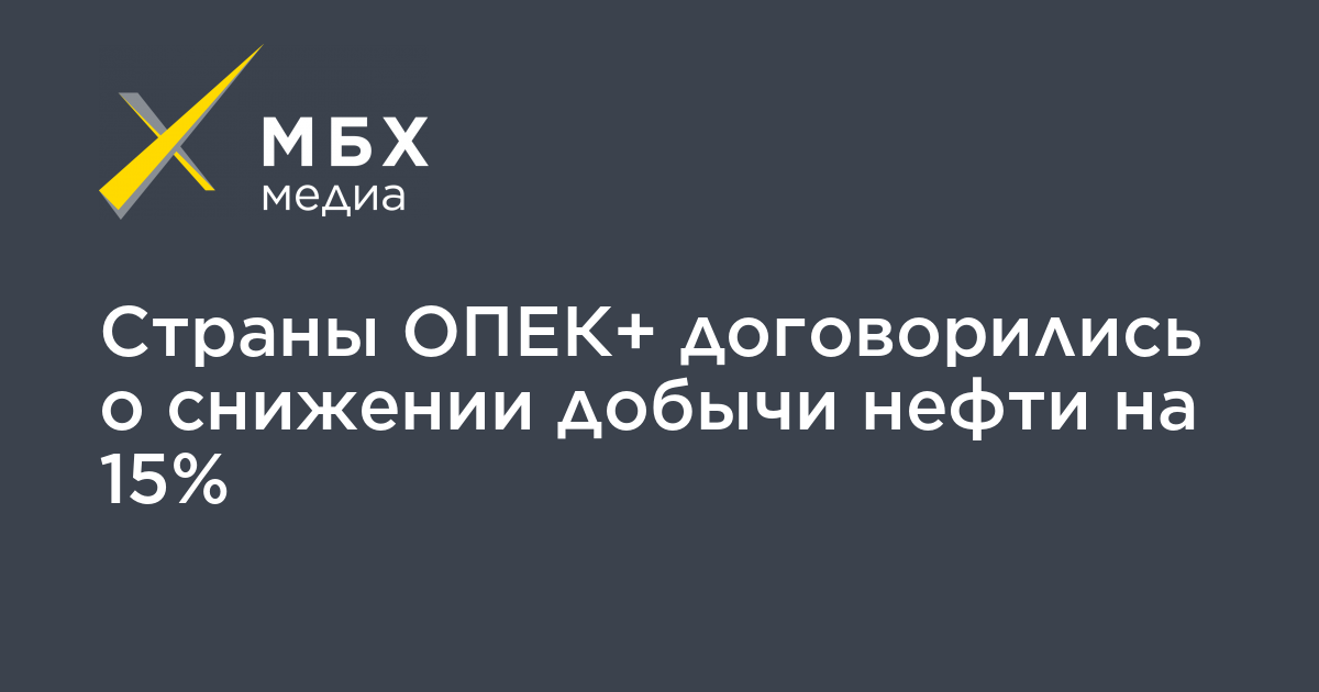 Страны ОПЕК+ договорились о снижении добычи нефти на 15%
