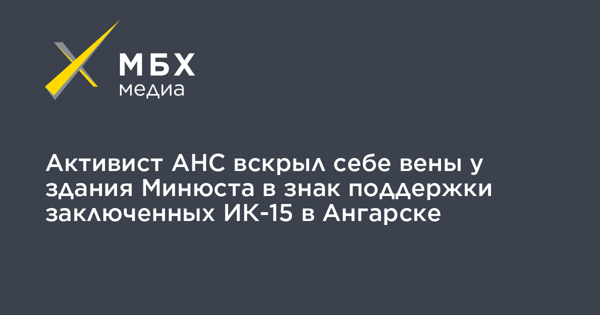 Активист Ассоциации народного сопротивления (АНС) Михаил Пулин вскрыл себе вены у входа в Министерство юстиции. Об этом «МБХ медиа» сообщил пресс-секретарь АНС Никита Зайцев. Так он выразил поддержку заключенным ИК-15 в Ангарске, где накануне произошел бунт.