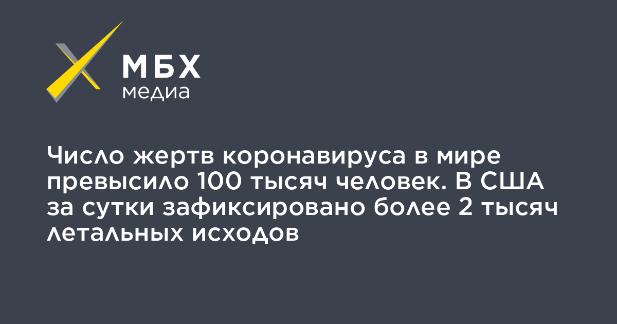 Число жертв коронавируса в мире превысило 100 тысяч человек. В США за сутки зафиксировано более 2 тысяч летальных исходов
