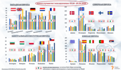 Под этими темпами в данном случае подразумевается период времени (дней), в течение которого общее количество случаев заболевания, выявленных в той или иной стране, успевает вырасти в 2 раза, то есть удваивается. И, например, ни в одной из 20-ти стран Европы, включенных в сравнение, за минувшие 7 дней это “удвоение” не ускорилось.