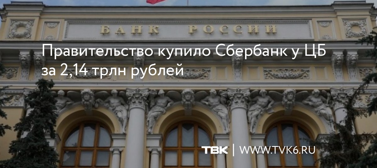 Правительство купило Сбербанк у ЦБ за 2,14 трлн рублей