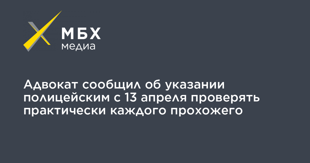 Адвокат сообщил об указании полицейским с 13 апреля проверять практически каждого прохожего