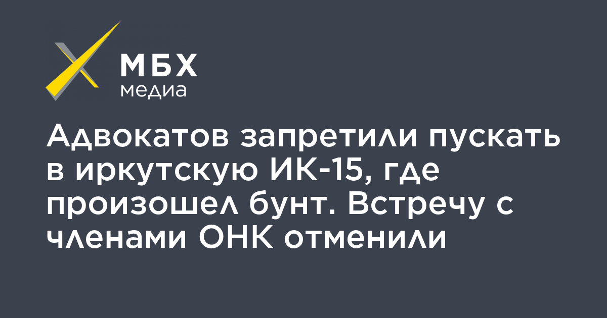 С 13 апреля в исправительную колонию № 15 Иркутской области, где 10 апреля произошел бунт, запретили пускать адвокатов, а обещанную ФСИН встречу с членами общественной наблюдательной комиссии (ОНК) отменили. Об этом сообщили «МБХ медиа» правозащитник Павел Глущенко и председатель ОНК по региону Олег Антипенко.