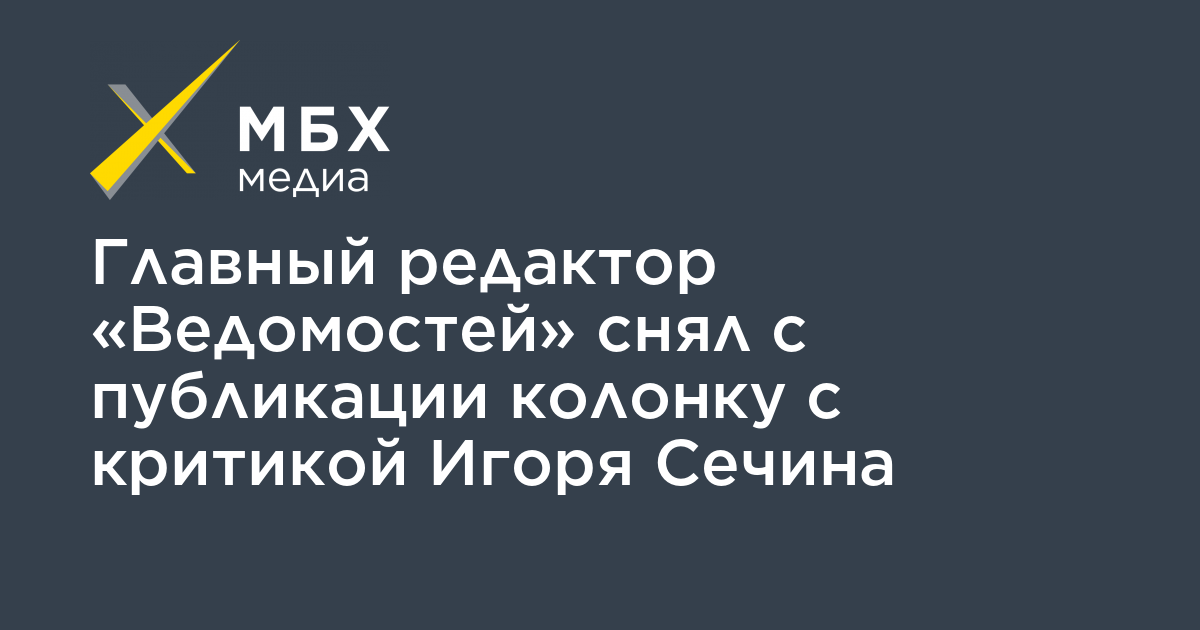 Главный редактор «Ведомостей» снял с публикации колонку с критикой Игоря Сечина