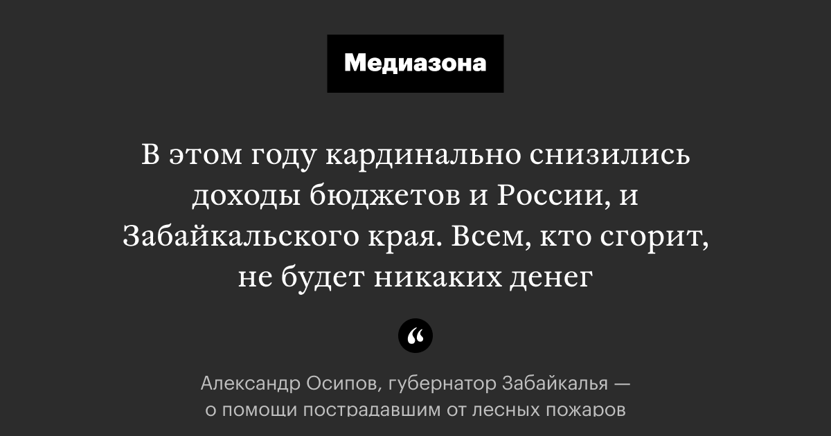 «В этом году из-за коронавируса и шока по нефтяным ценам кардинально снизились доходы бюджетов и России, и Забайкальского края. Поэтому по всем, кто сгорит, с учетом того, что никто почти не застрахован, не будет никаких денег!» — сказал чиновник.
