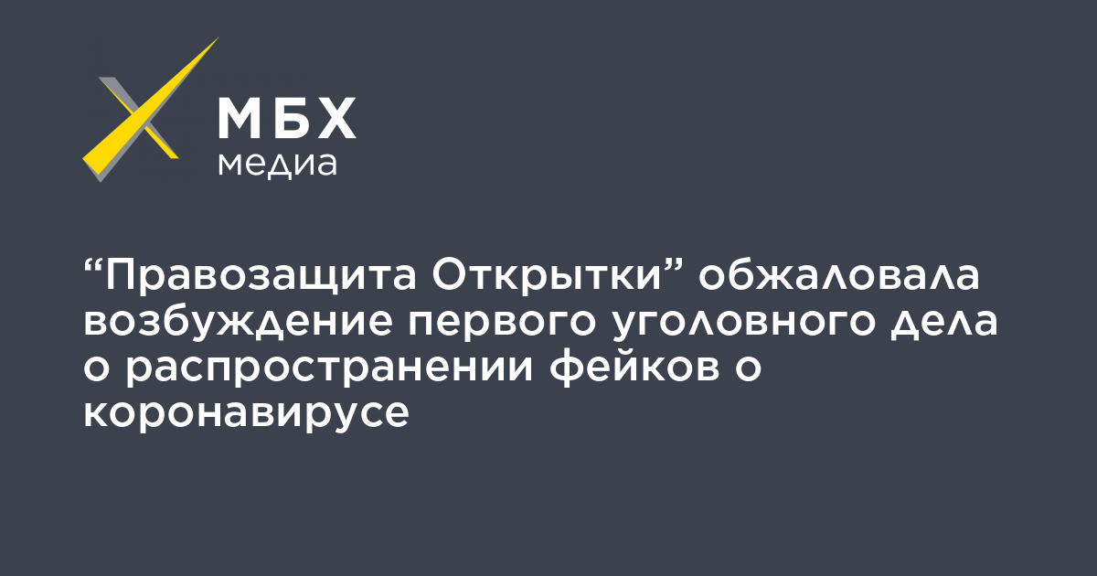 «Правозащита Открытки» обжаловала возбуждение первого уголовного дела о распространении фейков о коронавирусе