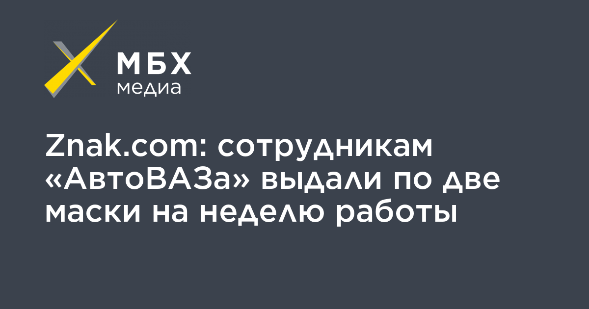 Znak.com: сотрудникам «АвтоВАЗа» выдали по две маски на неделю работы