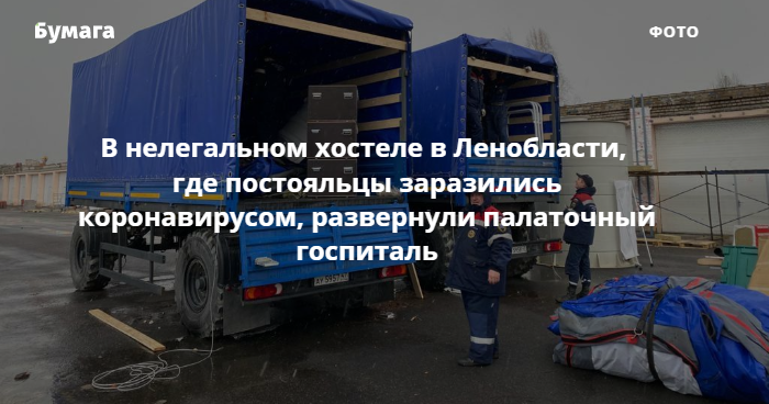 В хостеле в деревне Новосергиевка, где у 35 проживающих выявили заражение COVID-19, развернули палаточный госпиталь управления гражданской защиты Ленинградской области. В него переведут заболевших. Об этом сообщает официальный телеграм-канал пресс-службы правительства региона.