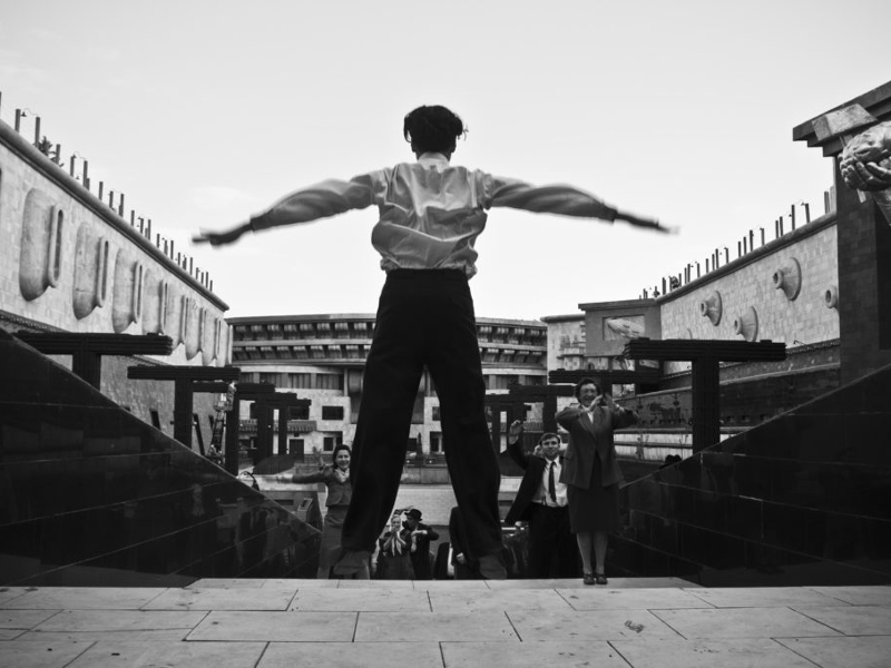 Кадр из фильма «Дау» Хржановский: И доносы, которые писались, — это же не доносы, которые писались, и людей могли реально в тюрьму посадить. Сажали в игровую тюрьму, из которой они могли всегда уйти. Например, у меня было двое ученых — два математика, близких друга. Они оказались вместе на проекте. Один из них стал себя вести очень резко: это был 1952 год, он стал очень жестко отзываться о Советской власти, товарище Сталине. Было ясно, что его арестуют. Так и случилось. А что значит «арестовали»? Посадили в машину, она его вывезла за пределы декораций, и он оказался на студии. Так закончилась его история внутри проекта.