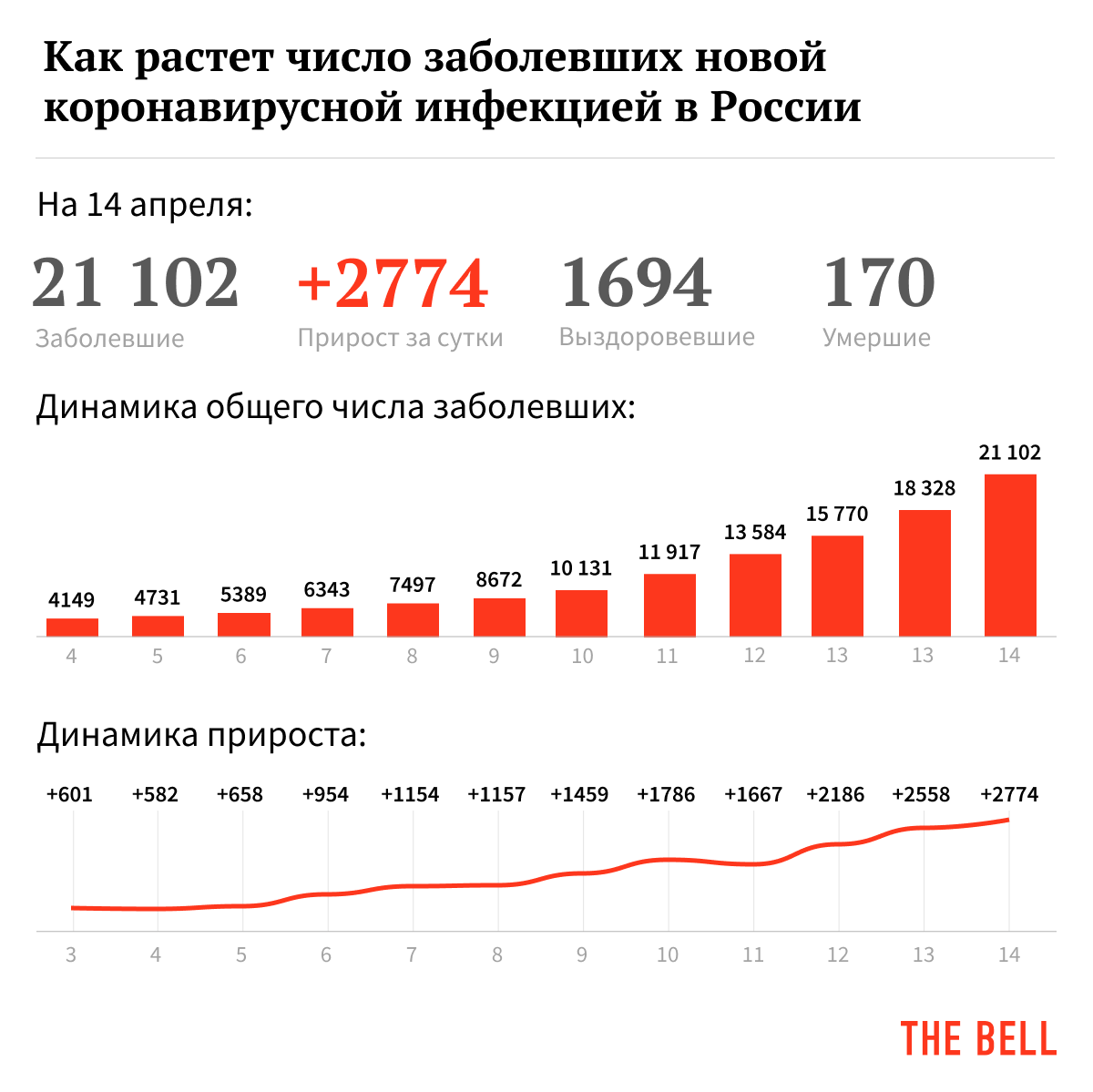 Эпидемия в России продолжает развиваться по нарастающей. Сегодня мы прошли отметку 20 тысяч заболевших — и удвоение числа случаев произошло всего за четыре дня.