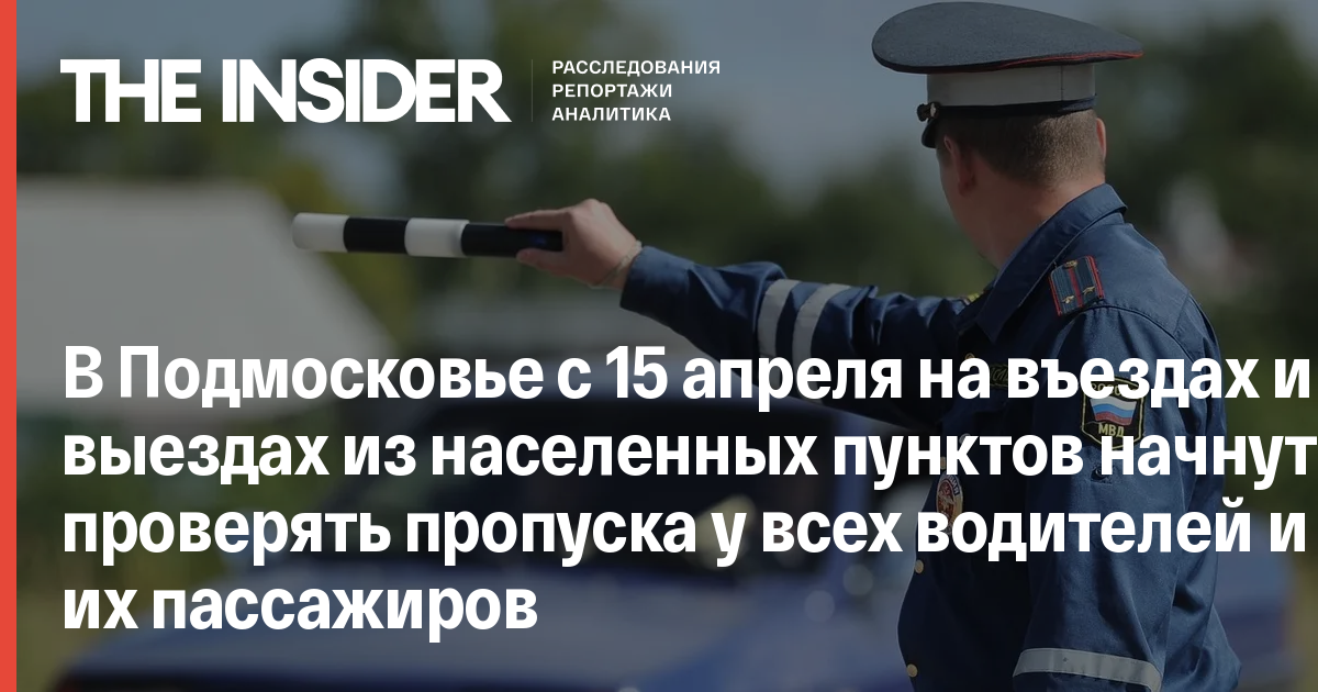 В Подмосковье с 15 апреля на въездах и выездах из населенных пунктов начнут проверять пропуска у всех водителей и их пассажиров
