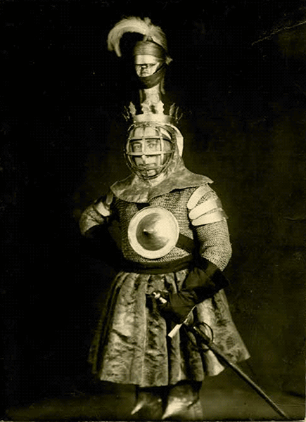Вот, к примеру, рассказ про «Сэра Джона Фальстафа» (1927). Как и все в этой книге, он построен как симультанная средневековая сцена или, если угодно, монтаж аттракционов. Карточка-афишка с именами постановочной группы; фотографии — общие планы и портреты; эскизы декораций и костюмов Николая Акимова; размышления о парадоксе восприятия шекспировских пьес, и по сей день яростно охраняющихся ревнителями «традиций», в то время как «постановки, в которых авторский текст остается неприкосновенным, весьма редки, и говорить о них как о традиции нет оснований»; отсылки к пьесе Нейема Тейта «Король Лир» (1681), где Лир не умирал, и к режиссерским эскападам Федора Комиссаржевского, чей Фальстаф в Стратфорде-на-Эйвоне напоминал императора Франца Иосифа I.