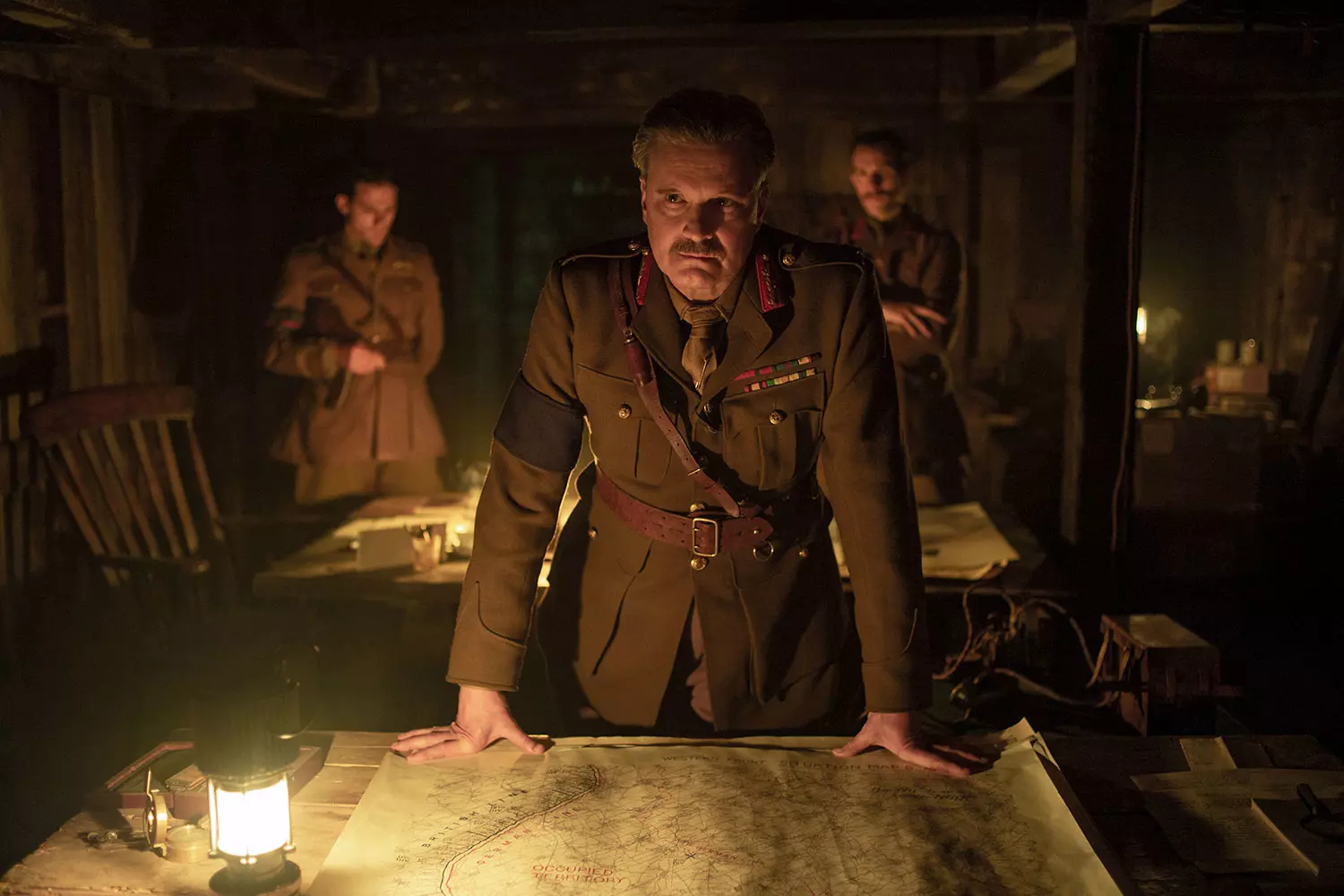 Колин Ферт в фильме «1917» В контексте «1917» выбор «Победителей» Киплинга на роль своего рода эпиграфа символичен и проблематичен. Киплинг, за семьдесят лет сделавший блестящую карьеру (от вундеркинда до законодателя литературных мод), стал одним из литературных синонимов Британской империи. Со всеми вытекающими последствиями. В публицистике — шовинист, сторонник колониальной политики и неистовый трибун, жестко проходившийся по стремившимся к независимости ирландцам, бурам, канадцам, а заодно и немцам с большевиками. В произведениях — несравненно более уравновешенный и мудрый автор, опечаленный как возвращением солдат с фронта Первой мировой в ничтожество, так и выходками брутальных молодцов, которым никакая честь не мешала бросить забеременевшую девушку. (После Первой мировой еще не было института героизма, бойцы не получали никаких регалий и вынуждены были вновь встраиваться в мирную жизнь с нуля; об этом вспоминают герои «Они никогда не станут старше» Питера Джексона — монтажного дока о той войне.)