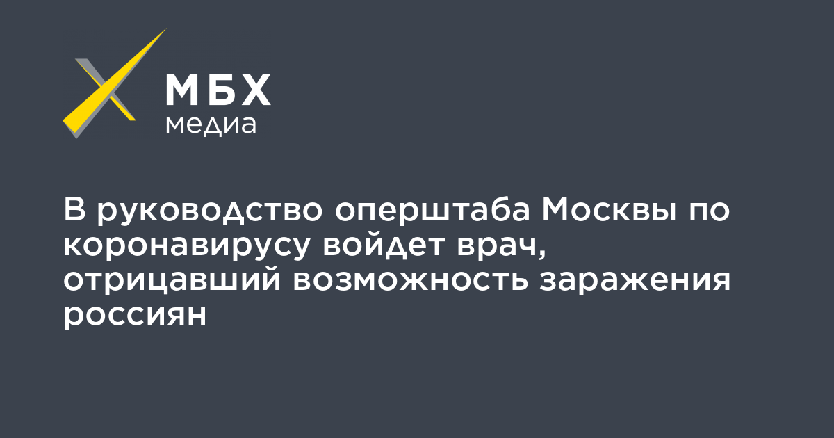 В руководство оперштаба Москвы по коронавирусу войдет врач, отрицавший возможность заражения россиян