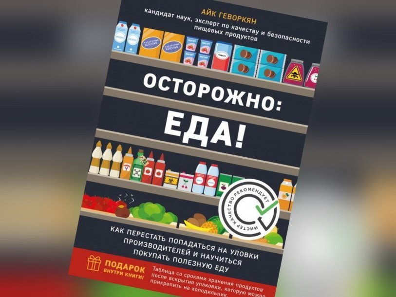 Обложка книги «Осторожно: еда! Как перестать попадаться на уловки производителей и научиться покупать полезную еду» Издательство «Эксмо» представляет книгу эксперта по качеству и безопасности пищевых продуктов Айка Геворкяна «Осторожно: еда! Как перестать попадаться на уловки производителей и научиться покупать полезную еду».