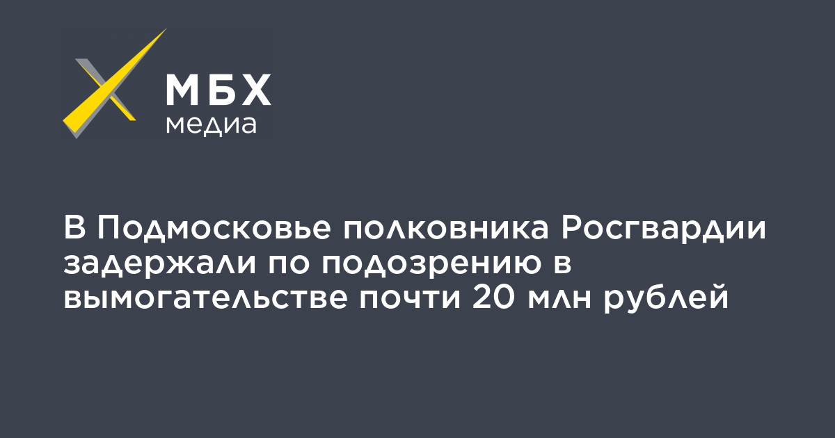 В Подмосковье полковника Росгвардии задержали по подозрению в вымогательстве почти 20 млн рублей