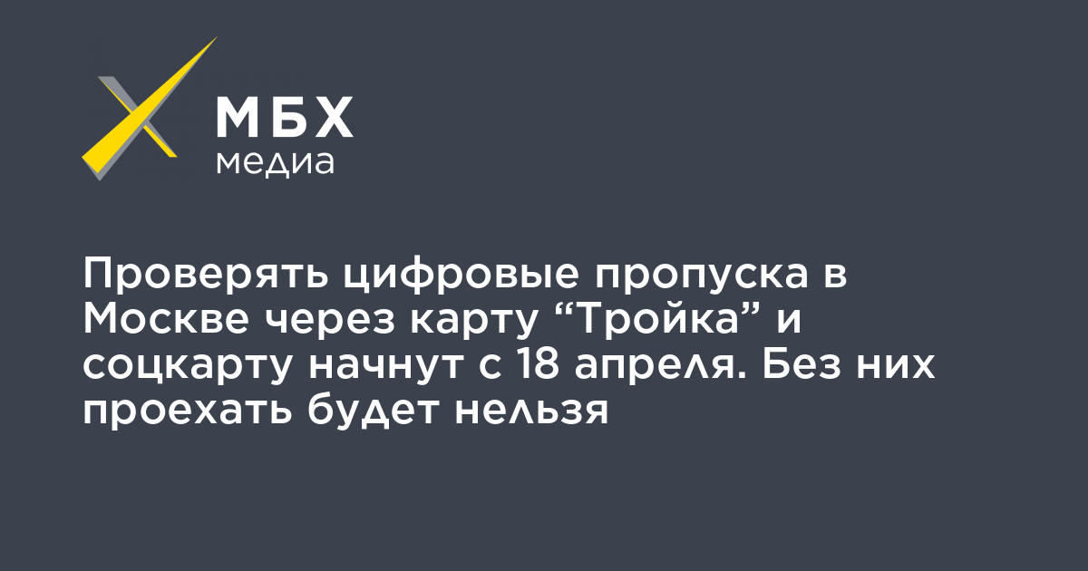 Проверять цифровые пропуска в Москве через карту «Тройка» и соцкарту начнут с 18 апреля. Без них проехать будет нельзя