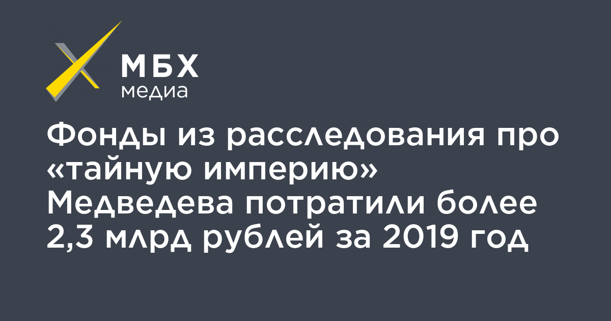 Некоммерческие фонды, которые в своем расследовании Фонд борьбы с коррупцией (ФБК) связывал с экс-премьером Дмитрием Медведевым, в 2019 году израсходовали около 2 млрд 316 млн рублей, подсчитало «МБХ медиа» на основе отчетов с сайта Минюста.