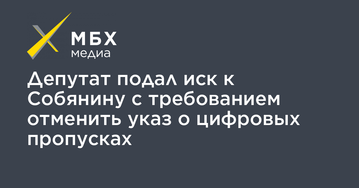 Муниципальный депутат Денис Шендерович подал коллективный иск в Мосгорсуд к мэру Москвы Сергею Собянину с требованием отменить указ о введении цифровых пропусков. Об этом Шендерович сообщил «МБХ медиа».