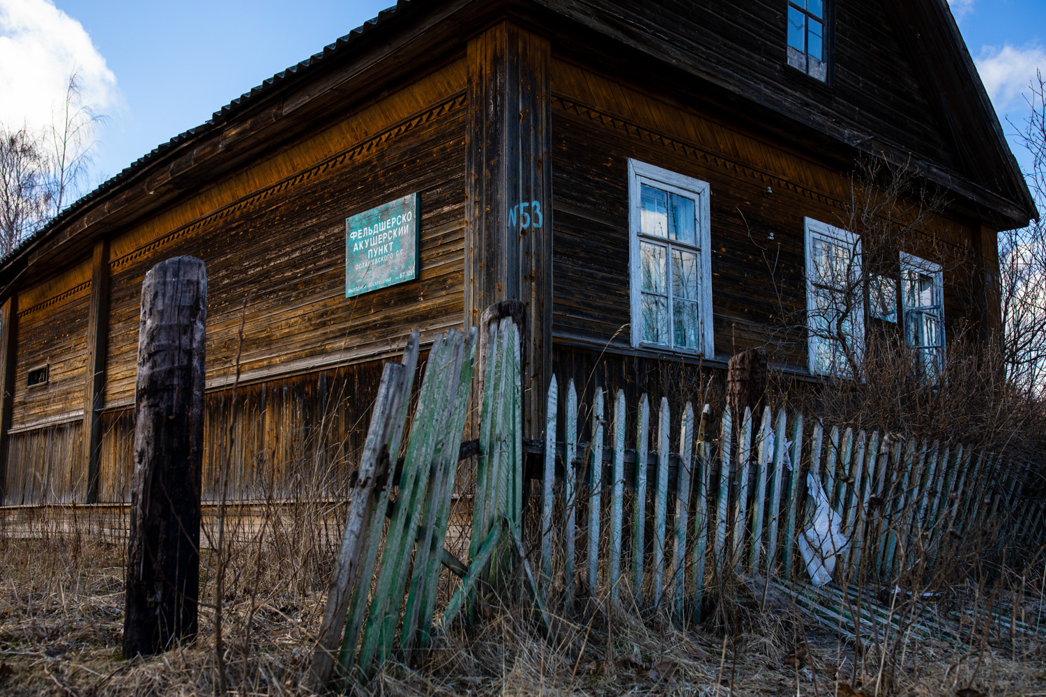 В Осташево фельдшерский пункт раньше был в опрятном деревянном здании (на нем осталась табличка), а в соседней Устреке занимал второй этаж купеческого дома (на первом почта), на двери до сих пор висит выцветший листок с написанными от руки часами работы. Красная Гора выглядит такой же нежилой, как и синее здание закрытого ФАПа (в окне виден календарь за 2019 год). В Барышево, говорит Серебрякова, «был вообще новый медпункт, там даже фельдшер работал». Но сейчас металлическая лестница на входе уже проржавела, а на чердаке выпали оконные ставни.
