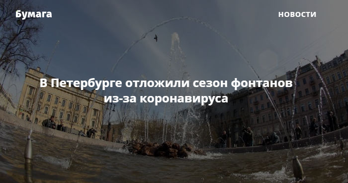 «По срокам начала работы фонтанных комплексов в этом году решение еще не принято. Поскольку в Петербурге введен режим самоизоляции, с целью минимизации контактов в период распространения коронавирусной инфекции до 30 апреля закрыты все парки и сады, и фонтаны [тоже в это время] не будут работать. Их открытие может стать точкой притяжения людей, а создавать дополнительный риск было бы неправильно. Решение об открытии будет принято по ситуации в городе», — сказали в пресс-службе предприятия.