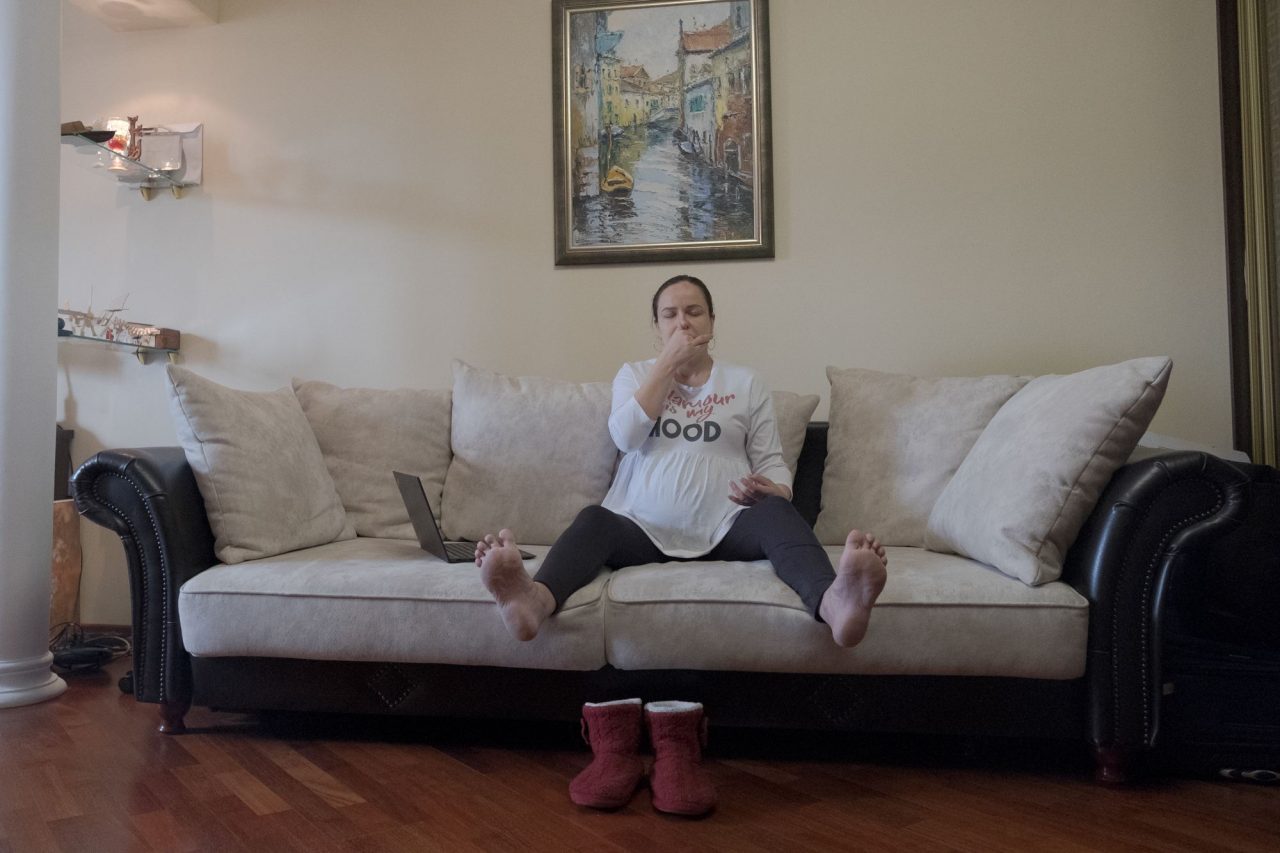 Ира занимается дыхательной гимнастикой, она должна помочь ей в родахФото: Юлия Скоробогатова Я юрист, у меня был достаточно высокий темп жизни, активно деловой. Сейчас ощущаю некий голод, очень непривычно. Я целыми днями вижу ребенка, пару часов в день мужа, и все. Для меня общение — это источник моего благополучия, вдохновения, спокойствия. Моего ресурса. Мне не хватает банально людей рядом. За три года, что я здесь [в Москве] провела, у меня еще не успел сформироваться круг знакомых, друзей, близких, с которыми можно было бы эту социальную изоляцию проживать или разделять. Я стала искать всякие мамские тусовки в надежде, что там встретится кто-то близкий по духу. Пока такая химия у меня не возникла.