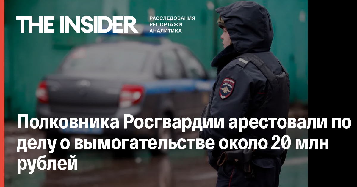 Полковника Росгвардии арестовали по делу о вымогательстве около 20 млн рублей