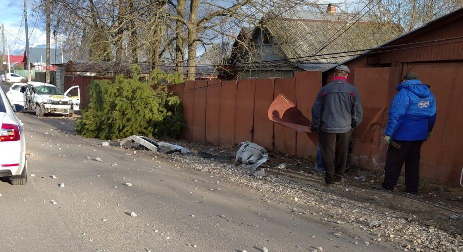 15 апреля около 5 вечера в посёлке Городищи водитель такси с двумя пассажирами двигался по улице Ленина. Около дома №70 на улице Ленина таксист не справился с управлением, съехал с дорожного полотна и врезался в опору ЛЭП, забор частного дома и дерево.