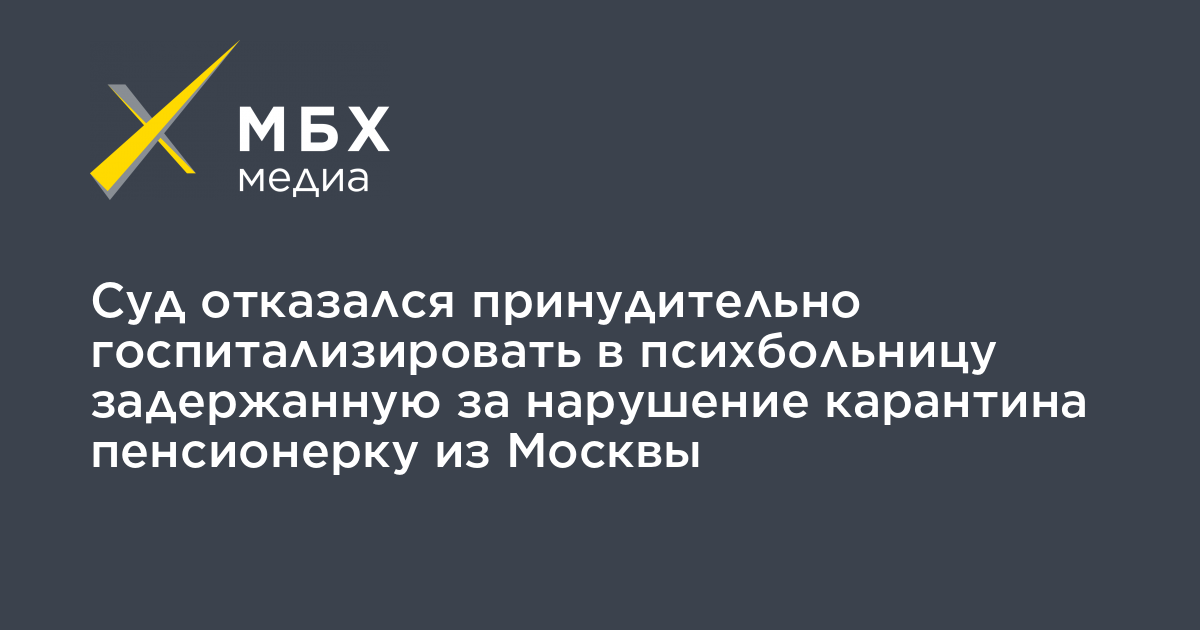 Люблинский районный суд города Москвы отказал в иске Психиатрической больницы №13 о принудительной госпитализации 63-летней пенсионерки, которую накануне задержали за поход в магазин. Об этом «МБХ медиа» сообщила адвокат «Правозащиты Открытки» Оксана Опаренко.