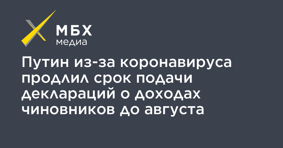 Владимир Путин продлил срок подачи деклараций о доходах и имуществе чиновников на три месяца — до 1 августа 2020 года. Соответствующий указ опубликован на сайте Кремля.