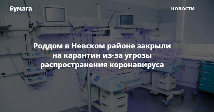 Ранее на коронавирусный карантин в Петербурге закрыли роддом № 10 в Красносельском районе и роддом № 16 во Фрунзенском районе. «Бумага» рассказывала, что известно о карантинах в медучреждения города.