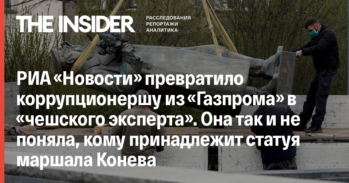 РИА «Новости» превратило коррупционершу из «Газпрома» в «чешского эксперта». Она так и не поняла, кому принадлежит статуя маршала Конева