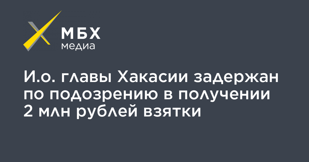 И.о. главы Хакасии задержан по подозрению в получении 2 млн рублей взятки